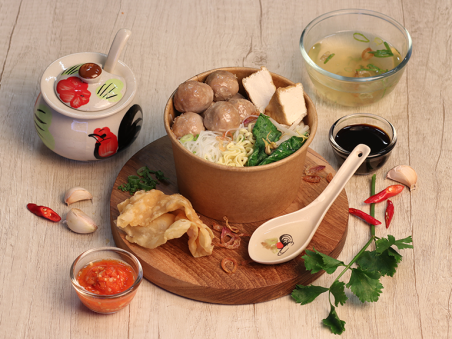 When all is done, add the meatball broth seasoning and serve with complementary ingredients.