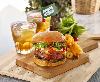 2Pan fry the Harvest Gourmet Burger Patty from straight from the pack in its frozen state. (Use non-stick pan to reduce oil usage) Cook each side for 5 minutes until it is soft inside. Deep fry frozen fries in cooking oil until golden brown. Alternatively, air fry at 200 Degrees Celsius for 10-15 minutes. (Fries are optional)